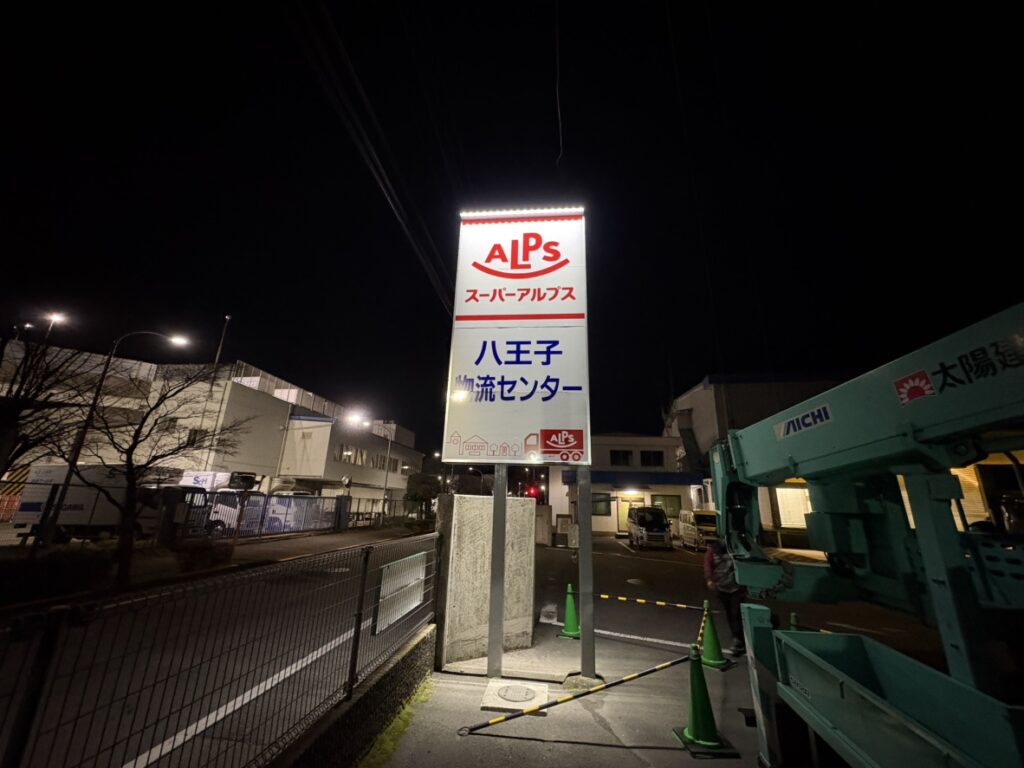 昭島市内物流センター様の自立サイン改修工事を行いました。