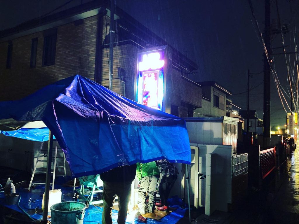 今回は雨の中での建て込み、点灯試験となりましたが無事設置出来ました。